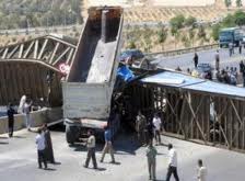 ''قلاب'' لأمانة عمان يتسبب بانهيار جزئي في جسر مشاة