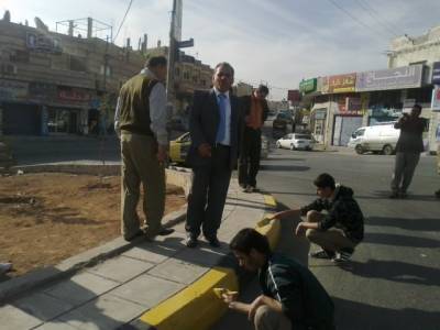 طلاب مدرسة الزرقاء الثانوية للبنين يقومون باعمال صيانة لدوار الخميس الذي تعرض للتخريب خلال الاضرابات