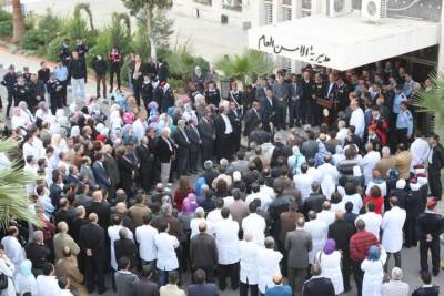 مئات الاطباء وكوادر وزارة الصحة وعلى رأسهم الوزير "الوريكات" يؤازرون مديرية الامن العام