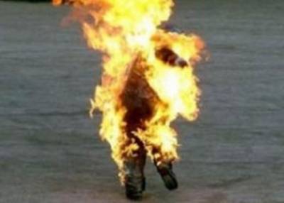 الرصيفة : شاب يسكب البنزين على نفسه ويشعل النار !