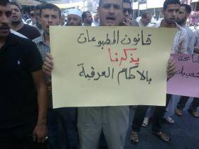 الطفيلة : محتجون "قانون المطبوعات عودة للاحكام العرفية" - صور
