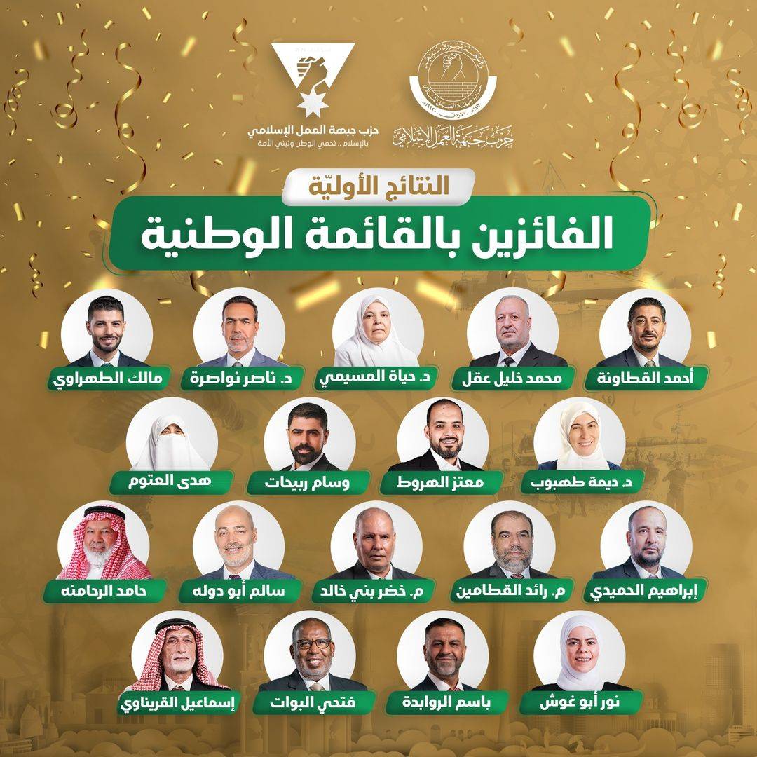العمل الإسلامي يعلن فوزه ب18 مقعدا على القائمة الوطنية.. حصل على نصف مليون صوت