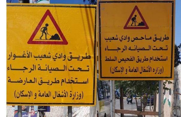 تنويه وتحذير الى سالكي طريق وادي شعب