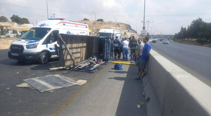 إصابات بحادث تصادم وتدهور مروع على طريق المطار