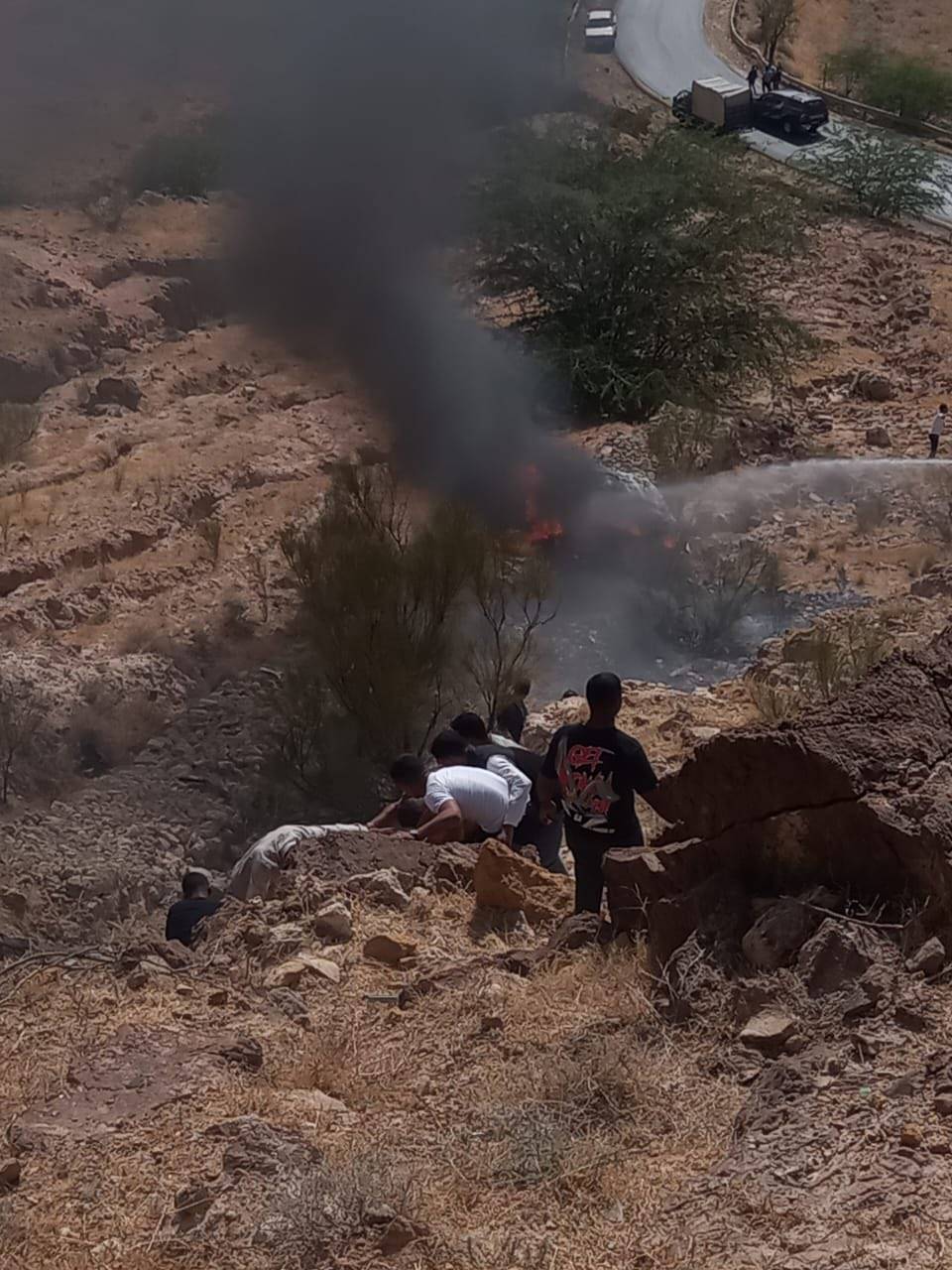 10 إصابات بحادث انقلاب باص واحتراقه على طريق دير علا