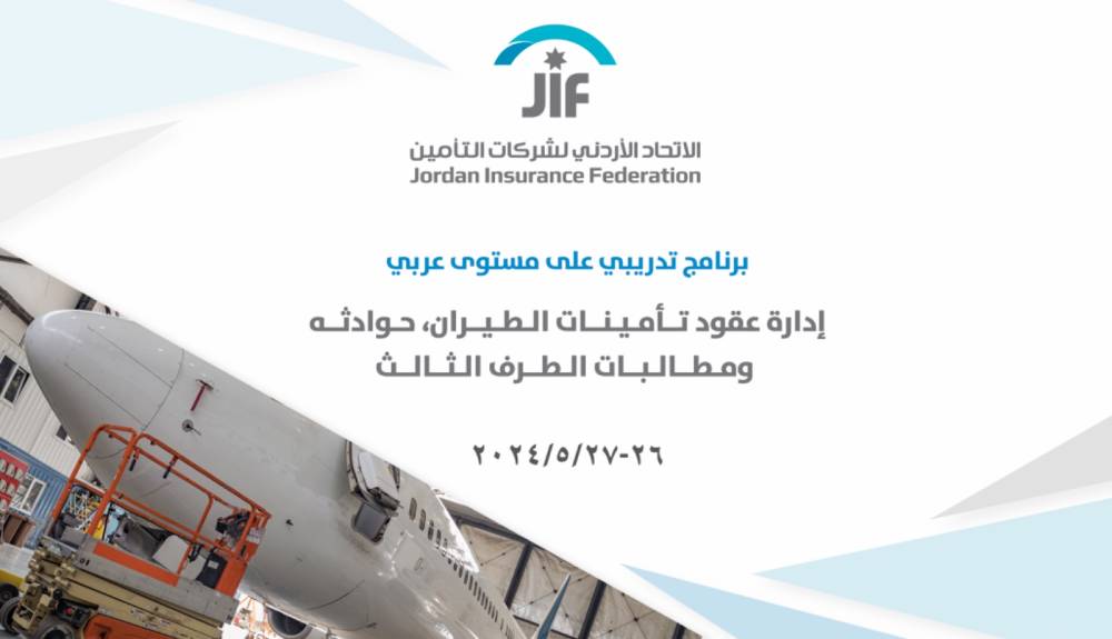 الاتحاد الأردني لشركات التأمين يعلن عن عقد البرنامج التدريبي الرابع المعنون: " إدارة عقود تأمينات الطيران، حوادثه ومطالبات الطرف الثالث"