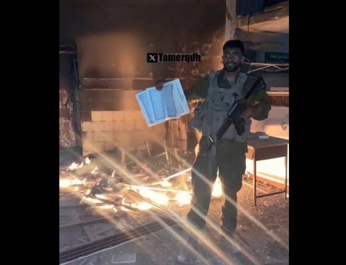 جندي إسرائيلي يحرق نسخة من القرآن الكريم ومسجدا في قطاع غزة