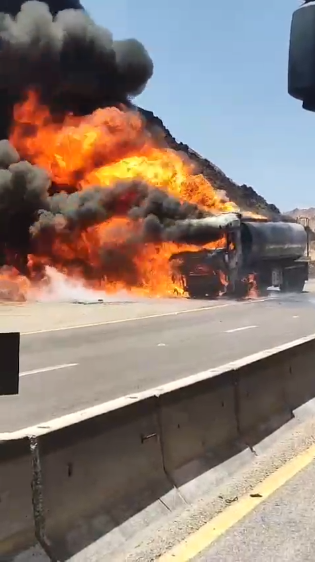 حريق صهريج محمل بمواد نفطية على طريق العقبة