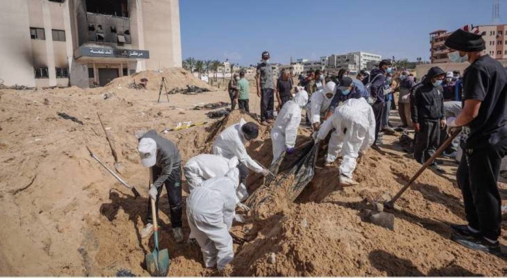 إنتهاء أعمال انتشال جثامين شهداء من مقابر جماعية بمجمع ناصر الطبي