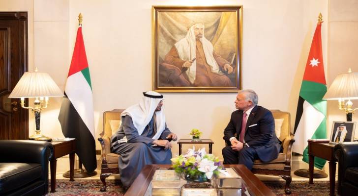 الملك والرئيس الإماراتي يؤكدان أهمية مواصلة تنسيق الجهود العربية بظل التطورات الإقليمية