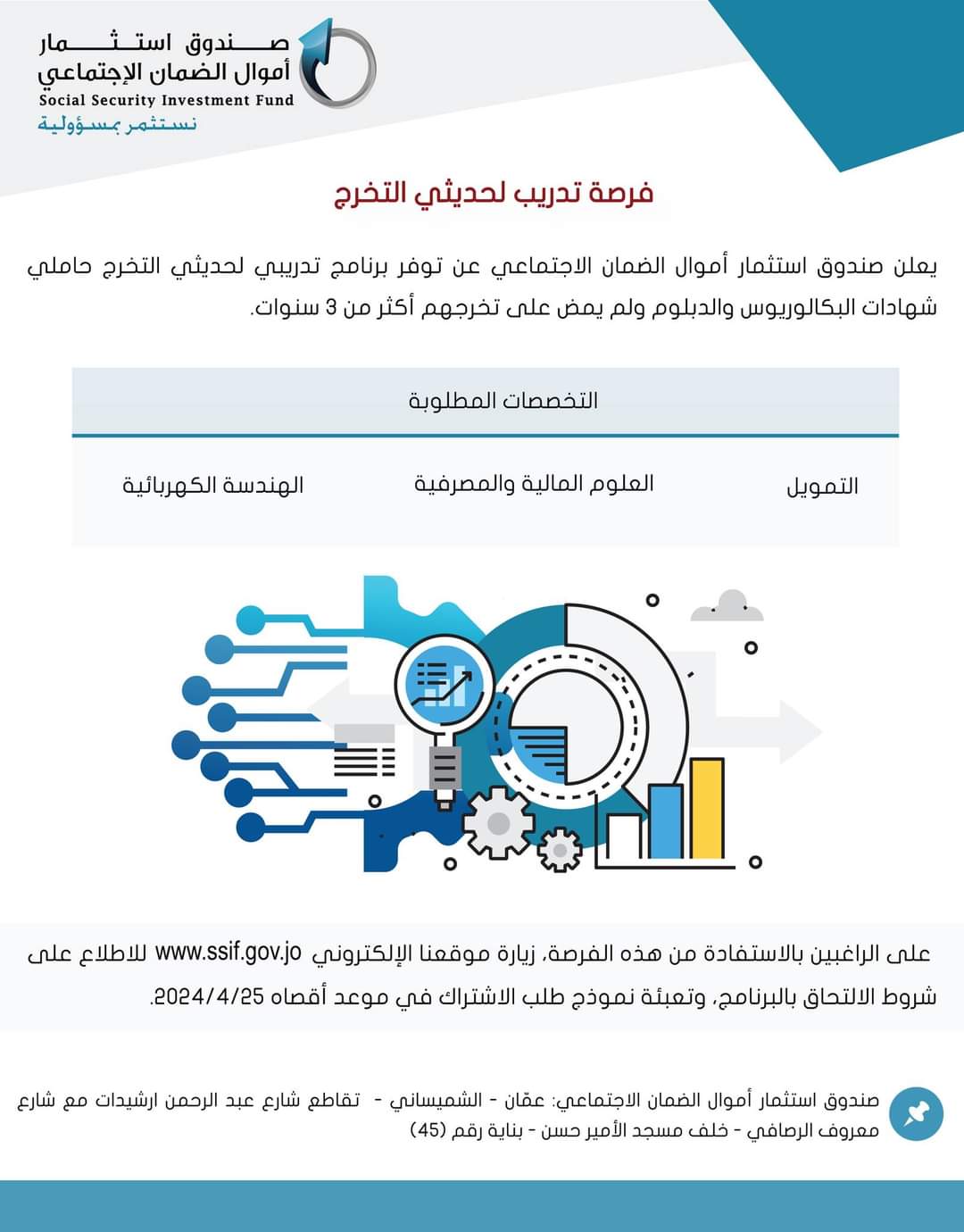 صندوق استثمار اموال الضمان يعلن عن توفر عدد من البرامج التدريبية لحديثي التخرج