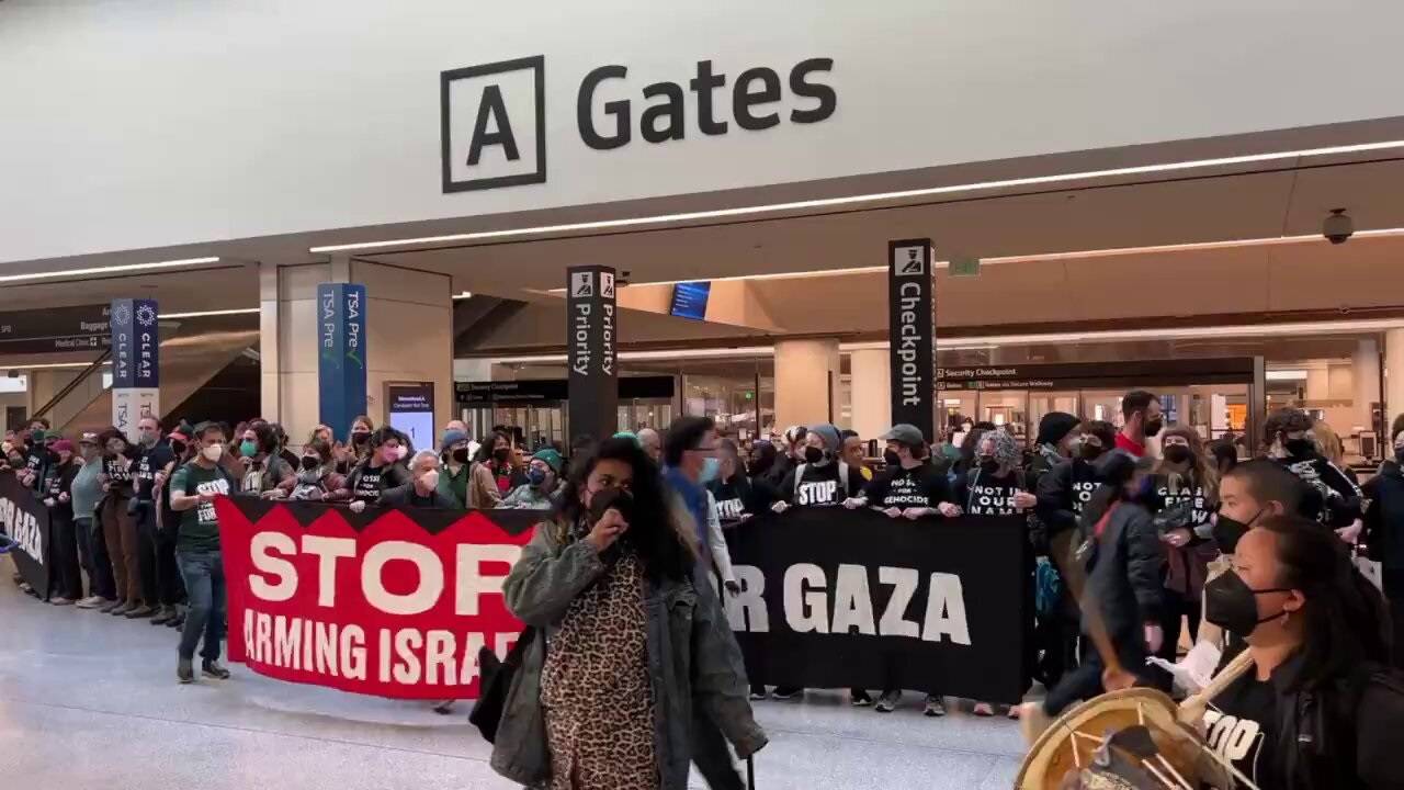متظاهرون يغلقون مطار سان فرانسيسكو ويطالبون بوقف إطلاق النار على غزة.. فيديو