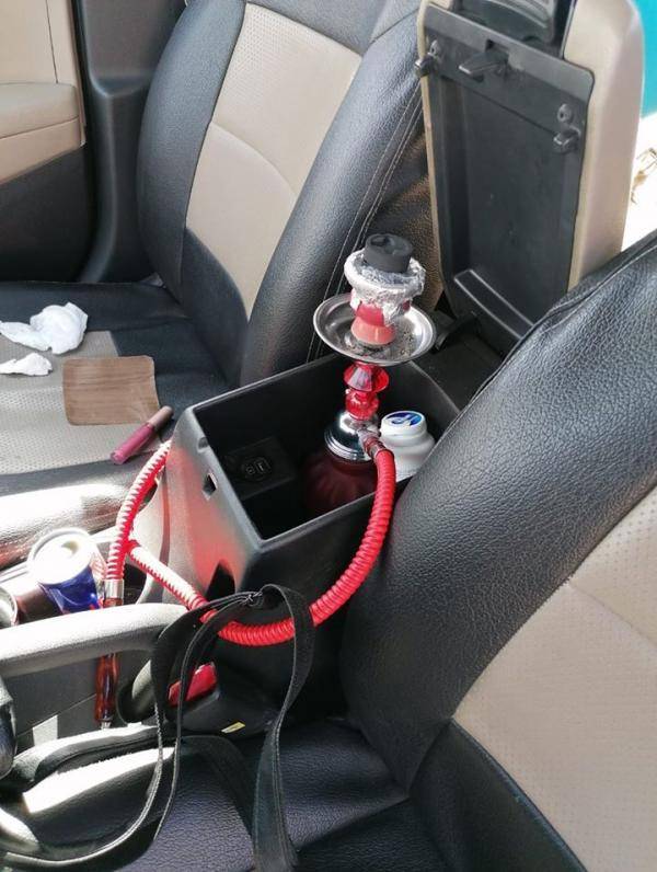 ضبط سائق مركبة شحن يدخن الأرجيلة أثناء القيادة
