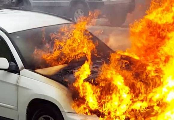 رجل يشعل النار في زوجته داخل سيارة