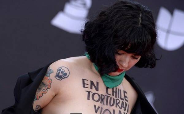 مغنية صدمت الجميع تعرت و كشفت عن صدرها أمام الكاميرات لإيصال رسالة