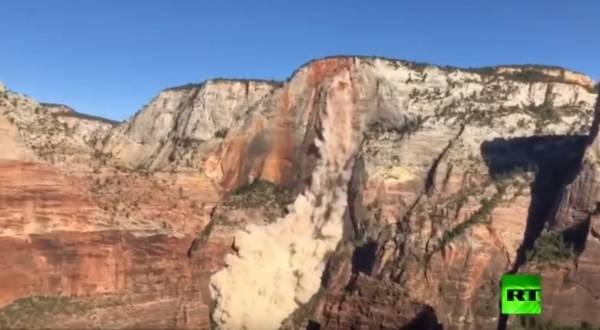 لحظة انزلاق صخري هائل في إحدى الحدائق الأمريكية