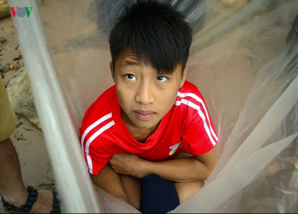 شاهد .. طفل يعبر نهرا في كيس بلاستيك للذهاب لمدرسته دون بلل