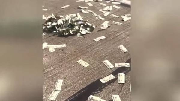 السماء "تمطر" دولارات حقيقية فوق شارع مزدحم! (فيديو)