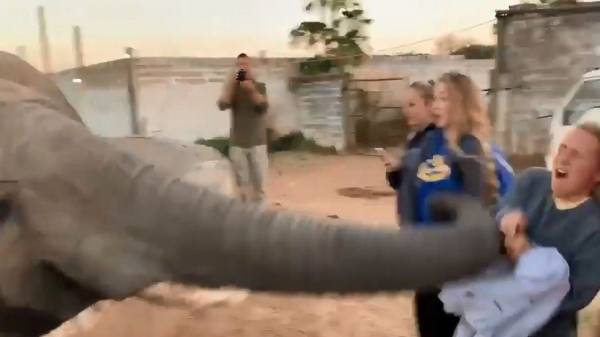 أرادت تصويره.. فيل "يصفع" أمريكية على وجهها! (فيديو)