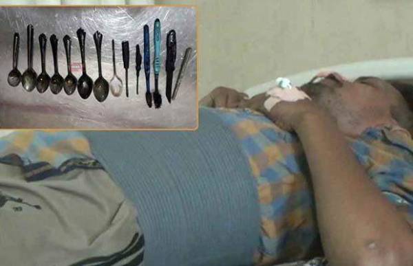 ملاعق وسكين ووقفل من معدة مريض!!