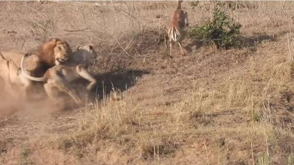 أسد "ينقذ" غزالا من أنياب لبؤة! (فيديو)
