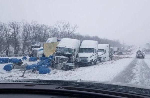 47 سيارة ..حادث مروع على طريق سريع في أمريكا (فيديو)