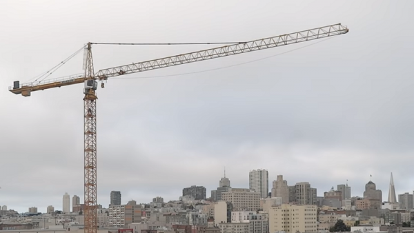 انهيار رافعة عملاقة يترك عامل بناء معلقا في الهواء! (فيديو)