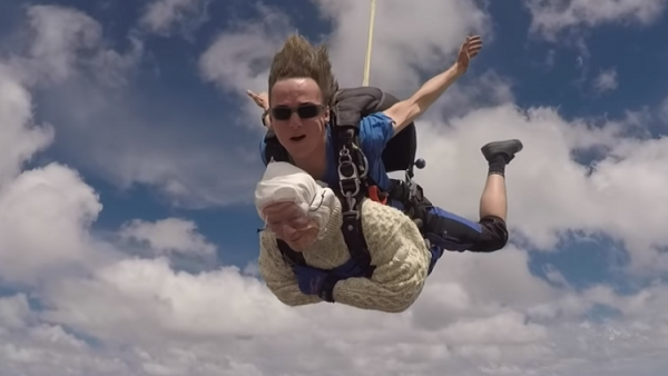 عمرها 102.. مسنّة تقفز بالمظلة من علو 4000 متر! (فيديو)