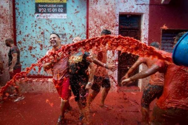 بالفيديو والصور... "حرب الطماطم" تشتعل في شوارع إسبانيا
