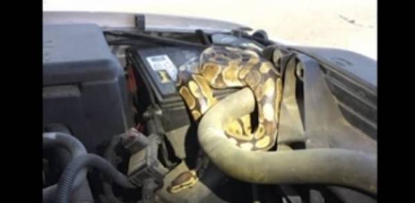 بالفيديو:"أفعى تعيش في ماتور السيارة" يكشفها عطل مفاجئ