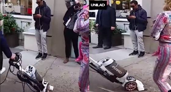بالفيديو..فتاة تستأجر رجلاً لتنظيف الشارع أمامها أثناء سيرها