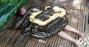 ثعابين عملاقة لتدليك السائحين المغامرين في الفلبين