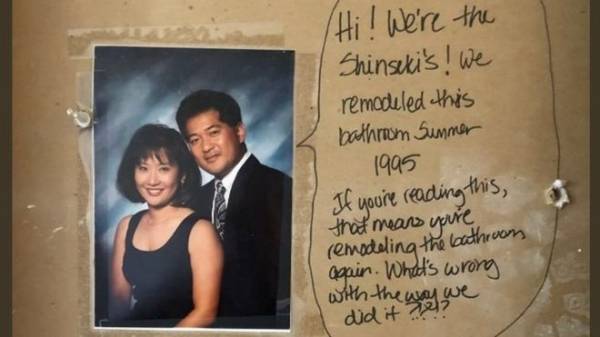 شاهد.. عثرا على رسالة غريبة عمرها 23 عاماً في حمام منزلهما!