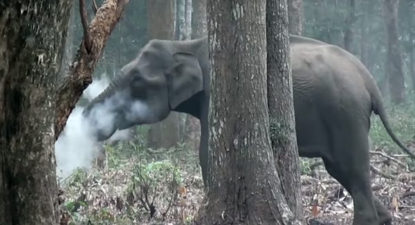 بالفيديو... الفيل المدخن يصيب العلماء بالدهشة