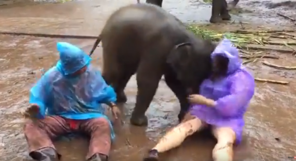 فيل يهاجم سائحة أمريكية في تايلاند- فيديو
