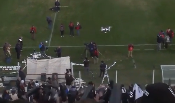 شاهد.. مشجع كرة قدم يتسبب في تحطيم "طائرة بدون طيار" بشكل لا يُصدق