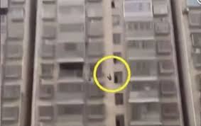 لحظة مرعبة لسقوط فتاة من الطابق الـ14