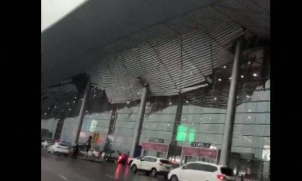 فيديو مرعب.. لحظة انهيار سقف المطار أثناء مرور السيارات