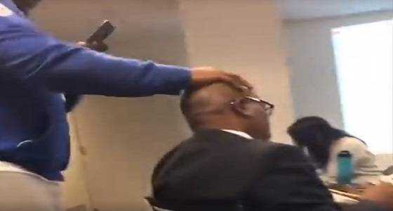بالفيديو.. رد فعل غريب لرجل أصلع وضع شاب يده على رأسه