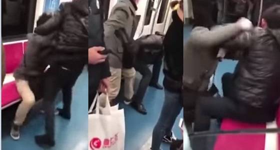 بالفيديو.. شجار عنيف بين راكبين على متن قطار