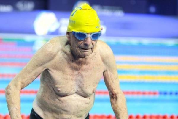 بالصور... سباح عمره 100 عام يسجل رقما قياسا عالميا