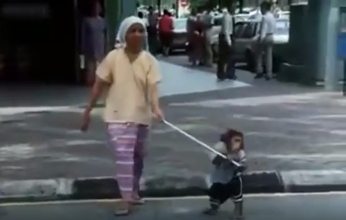 قرد يساعد امراة عمياء لتعبر الطريق - فيديو روعة