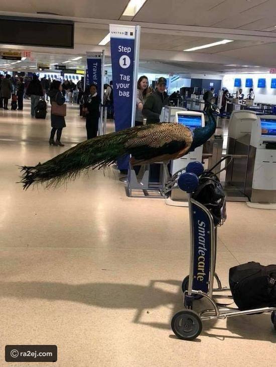 شاهد..مسافرة تحاول اصطحاب طاووس كبير على متن طائرة..وماخدث..