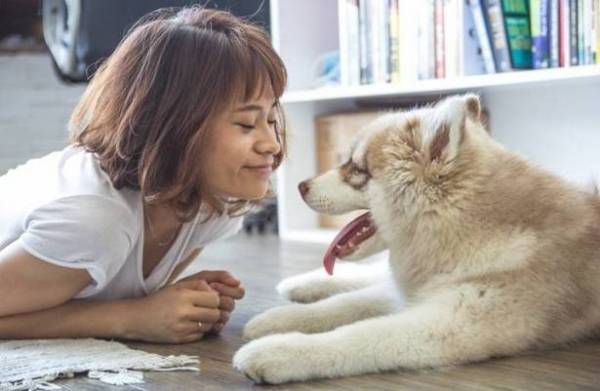 بالفيديو .. كلب يبكي ويذرف الدموع بسبب توبيخ صاحبته!