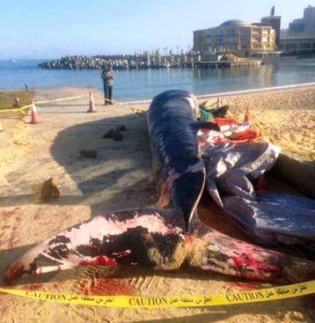 العثور على حوت عملاق نافق على شاطئ الإسكندرية