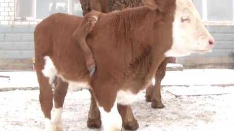 ولادة عجل بـ 5 أرجل! (فيديو)