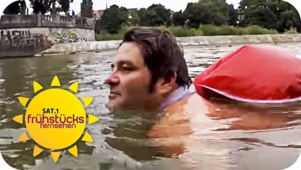ألماني يذهب لعمله سباحة لتجنب ازدحام الطرق ( فيديو)