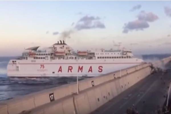 بالفيديو.. سفينة عملاقة تخرج عن السيطرة وتصدم سور الميناء