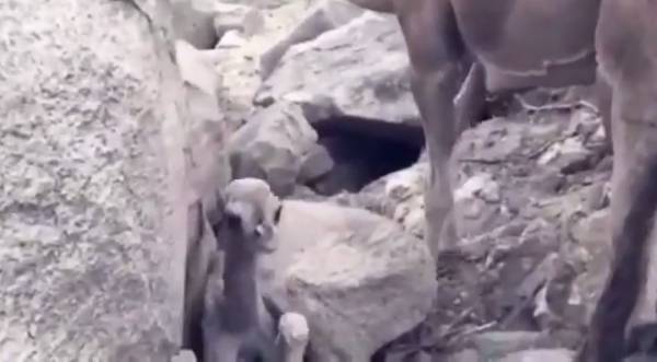 ناقة تستغيث بصياد لإنقاذ حوارها الصغير!