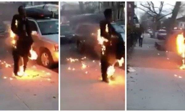 امريكي .. يتجول في الشارع وهو يحترق.. فيديو